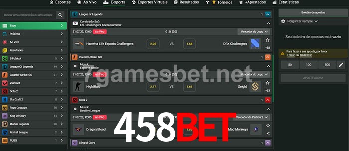 O 458Bet oferece uma grande seleção de opções de apostas em e-sports com probabilidades competitivas